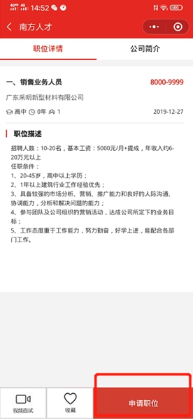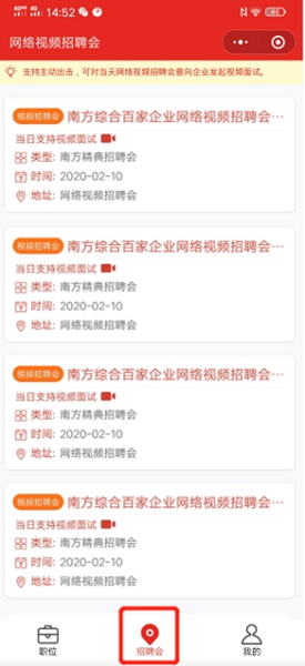 5. 扫码南方人才小程序,也可进入视频求职页面。