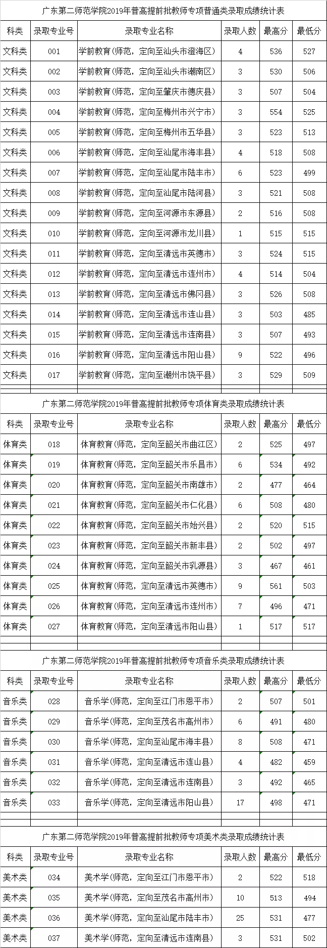 广东二师2020年公费定向师范生招生100名,附去年录取分数线