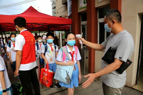 经过校门口的体温检测后