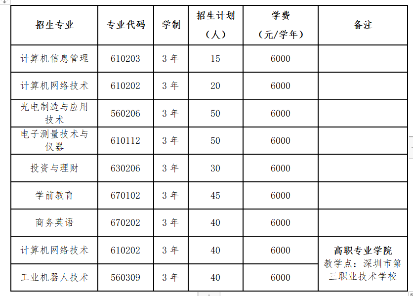 根据广东省教育厅《关于做好2020年高等职业院校自主招生工作的通知》(粤教考函〔2020〕1号)文件精神,深圳信息职业技术学院2020年继续面向中职毕业生开展自主招生试点工作,招生计划共330人(中职自主招生计划250人、高职专业学院试点班计划80人),技能大赛免试生计划不限。