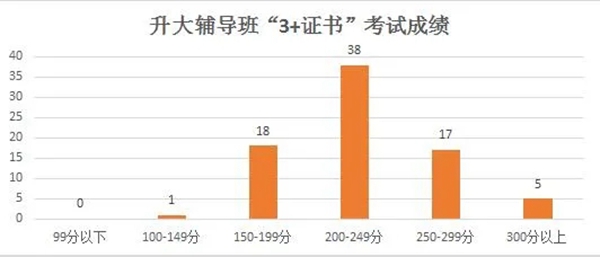 我校升大辅导班共79人参加了2020年“3+证书”考试,平均分260分,专科上线率100%,达本科院校投档线260分以上18人,本科上线率22.8%。