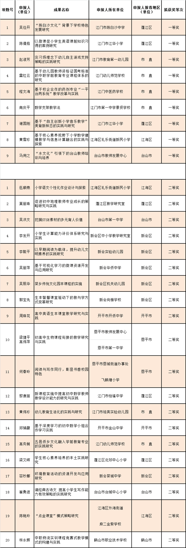 2019年江门市普通教育教学成果奖获奖名单出炉!